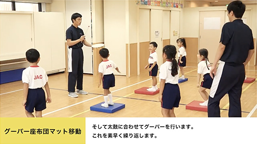 ジャックの体操クラスはお子様たちが、楽しく・元気よく・勢いよく授業を受けています。入試では実技の習得度だけでなく、きちんと先生の話を聞くことも大切です。受験体操では集中して人の話が聞けるように、話を聞いている時の姿勢も指導しています。また「できない」が「できた!」へ変わる体操は、お子様に「自信」「やればできる」という強い気持ちを芽生えさせ、体操以外の分野にも良い効果をもたらしています。